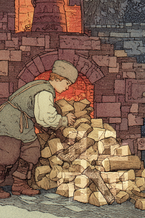 На Сергия затопить печь поручают самому младшему, а взрослые первым делом отправляются накормить скотину.